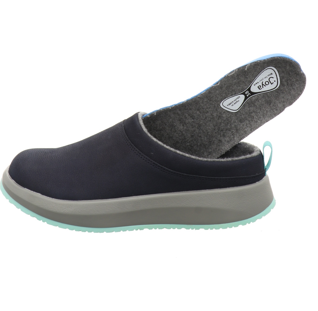 Gemütlicher Clog von Joya. Das Obermaterial besteht aus hochwertigem Nubukleder. Gefüttert ist er mit warmem und kuscheligem Textil. Das Fußbett ist austauschbar. Für Ihren persönlichen Gehkomfort können Sie Ihre eigenen Einlagen einsetzen. Die leichte und abriebfeste EVA-Sohle in Kontrastfarbe sorgt für optimale Dämpfung und besten Halt. Durch die Senso Sohlentechnologie werden die Rückenmuskulatur, Gelenke und Füße entlastet. Ein warmer und bequemer Schuh für jeden Tag!