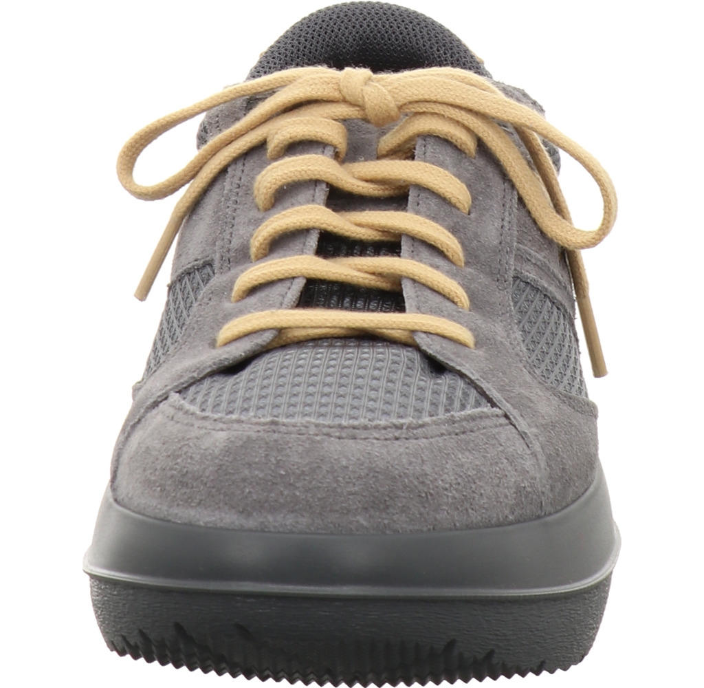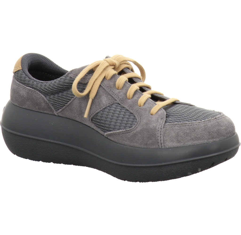Sportlicher Luftkissen-Schuh des schweizer Herstellers Kybun. Das Obermaterial besteht aus einem Mix aus Mesh und Veloursleder. Für das Futter wurde hochwertiges Mesh verarbeitet. Mit der Strato Laufsohle aus PU in der Millionen Luftblasen eingeschlossen sind haben Sie jederzeit besten Halt und optimales Abrollen des Fußes. Dieser Sohlentyp bietet maximale Dämpfung, der Fußdruck wird gleichmäßig verteilt und gleicht Schonhaltung und Schiefstände aus durch das elastisch-federnde Material. Ein Luftzylinder sorgt für optimalen Luftaustausch und angenehmes Fußklima. Durch den Trampolin-Effekt wird Ihr Körper trainiert und entlastet. Sie laufen federleicht wie auf Wolken. Die Konstrastfarben unterstreichen die sportliche Optik zusätzlich. Für mehr Individualität liegt ein zweites Paar Schnürsenkel anbei. Dieses Modell ist vielseitig kombinierbar und perfekt für jeden Tag!