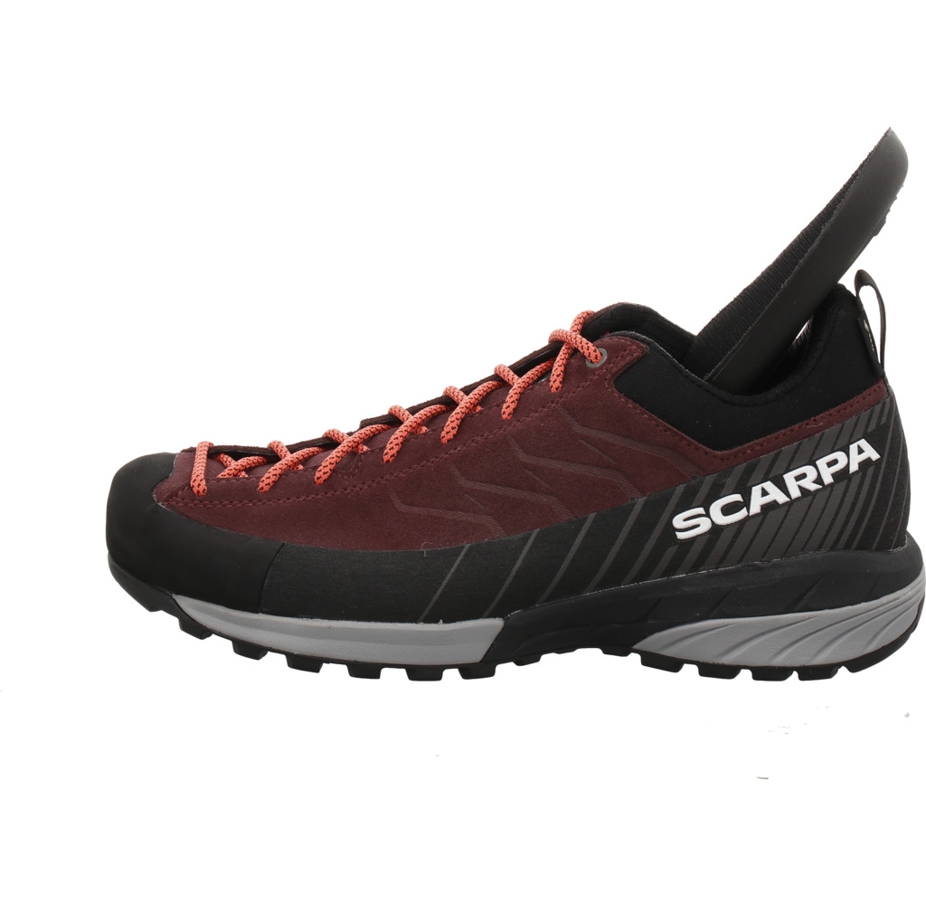 Der Klassiker für technische Zustiege, leichte Kletterei und Klettersteige aus dem Hause Scarpa. Das Obermaterial besteht aus wasserabweisendem Suede Leder. Zunge und Schaftabschluss wurden aus weichem Stretch Textil gefertigt. Der leichte und robuste Geröllschutzrand aus PU Tech und die Gummizehenkappe sorgen für besten Schutz. Dank der EVA-Zwischensohle bietet dieser Schuh mehr Stabilität. Das erweiterte Schnürsystem welches bis zu den Zehen reicht sorgt für bestmögliche Passform. Die Dynamics LB Sohle mit Vibram® Lite Base Technologie aus Vibram® Megagrip Gummi sorgt jederzeit für optimalen Halt. Die Innensohle ist austauschbar. Für Ihren persönlichen Gehkomfort können Sie Ihre eigenen Einlagen einsetzen. Ein Schuh der hohen Tragekomfort und Schutz bietet und gleichzeitig auch optisch ansprechend gestaltet ist.
